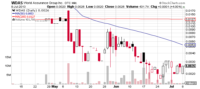 World Assurance Group, Inc. (WDAS) – WDAS, which was promoted two weeks ago, is once again in the focus of penny stock promoters. This time the campaign dedicated to the company is led by Wall Street Buzz, who disclosed a compensation of $10,000 provided by a third party called D. Lawless.