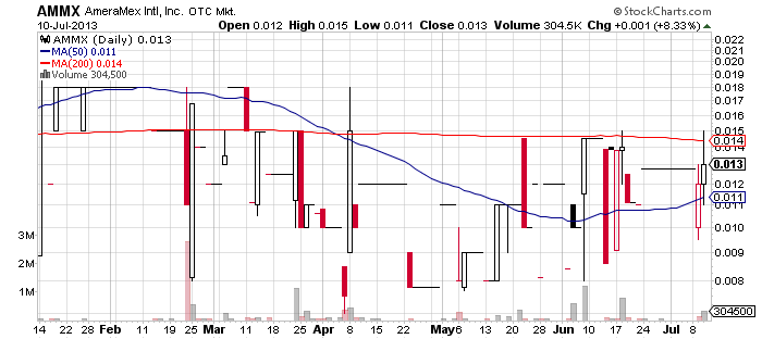 AmeraMex International Inc. (AMMX) – The next promotion is dedicated to AMMX, a Pink Sheet Limited Information Company. The campaign has involved several promoters among which Stock Rock and Roll, Stock Bomb, Penny Stock Locks and Stock Lock and Load, all of which had been compensated $12,500 by ODD Marketing.