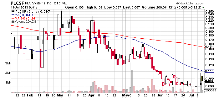 PLC Systems, Inc. (PLCSF) – PLCSF can also boast of a heavily compensated promotion today. The company’s stock symbol has appeared in the headlines of a dozen paid newsletters since the last closing bell.
