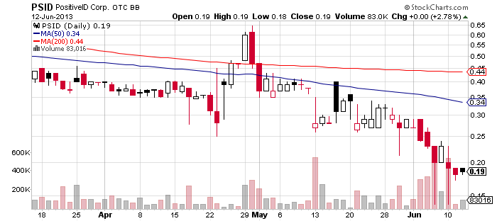 PSID was previously promoted on March 25th when its stock rose slightly on a higher than average volume to $0.40 per share. However, since then PSID stock has been declining and this week it hit a 52-week low at $0.18 per share.