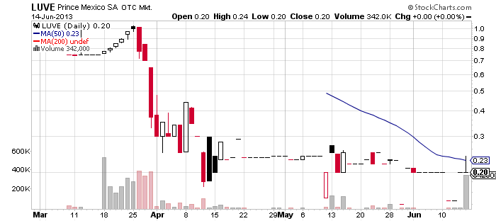 Prince Mexico S.A, Inc. (LUVE) – Today’s highest paid promotion is on LUVE. The campaign is led by two groups of promoting websites: