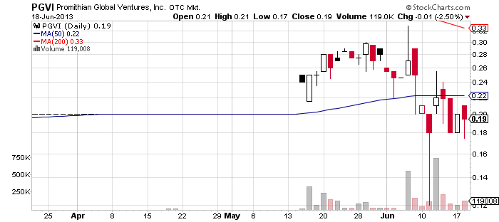 Promithian Global Ventures, Inc. (PGVI) – PGVI received another bunch of newsletters today, which makes it clear the promoters are not going to give up pumping the stock soon. All of the newly issued promo letters announced that PGVI had outlined a strategic plan for its Warburton bulk sampling project.