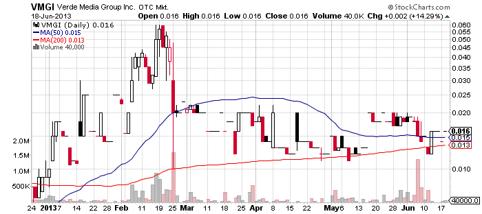 Verde Media Group, Inc. (VMGI) – Yesterday, VMGI received its first promotion for the year as three stock promoters started spreading trade alerts on the stock after the last closing bell.