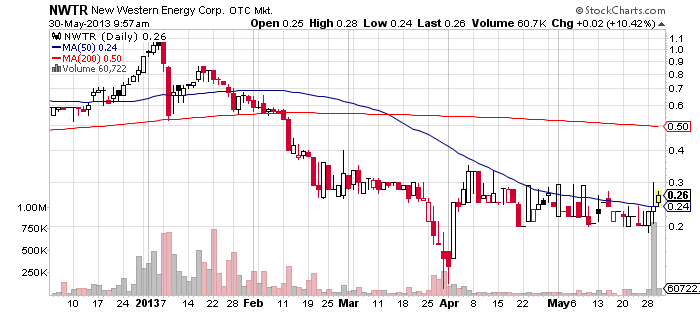 New Western Energy Corp. (NWTR) – Yesterday NWTR announced it had completed the acquisition of the “Fredonia Gas Prospect” consisting of three producing gas leases in Wilson County, Kansas. The news was accompanied by a market awareness campaign which was initiated by Too Nice Stocks.
