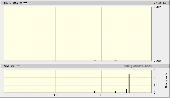 The company has just issued a press release, which announced that MSPC had completed all of the regulatory requirements to become a publicly traded OTCQB fully reporting entity. Along with this news release, MSPC has also been involved in a promotional campaign which was initiated yesterday after the closing bell.