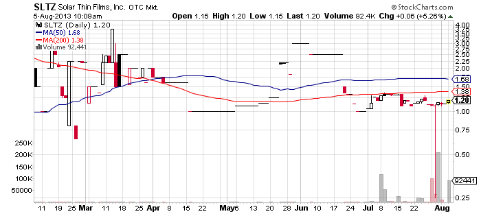 Solar Thin Films, Inc. (SLTZ) – SLTZ looks like another highly speculative play for Monday. The company has been featured in an expensive promotional campaign which has been supported by a total of eight promoters.