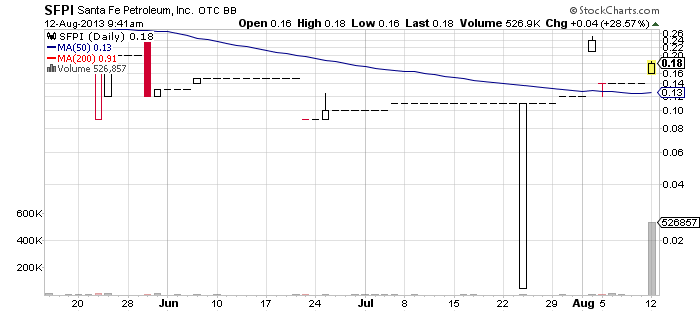 Santa Fe Petroleum, Inc. (SFPI) – A serious onslaught of paid newsletters dedicated to SFPI has been hitting investors’ in-boxes since yesterday afternoon. There have been nearly two dozens of penny stock promoters involved in this campaign.