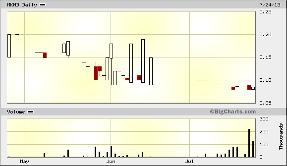 The total compensation received by the promoters sums up to $35,000 for a two-day marketing and promotional effort. MKHD was promoted not long ago, on June 27, but as it is visible by the stock chart that no market activity was registered towards MKHD stock on that day.