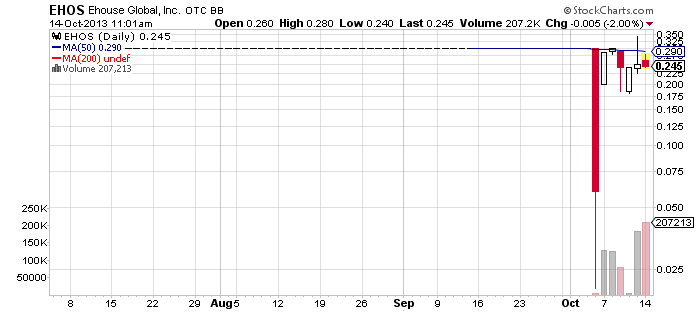Ehouse Global, Inc. (EHOS) – EHOS has been struggling to get the market’s attention since it announced the acquisition of NutraLiquids LLC last week. These efforts have been aided by a significant promotional backup.