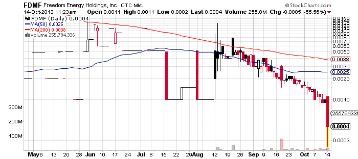 Freedom Energy Holdings, Inc. (FDMF) – FDMF is one of the most intensively promoted companies today. The campaign on FDMF is led by numerous stock promoters and a couple of third parties, among which RTF Inc., Bon Cap Indy LLC and NAT Inc.