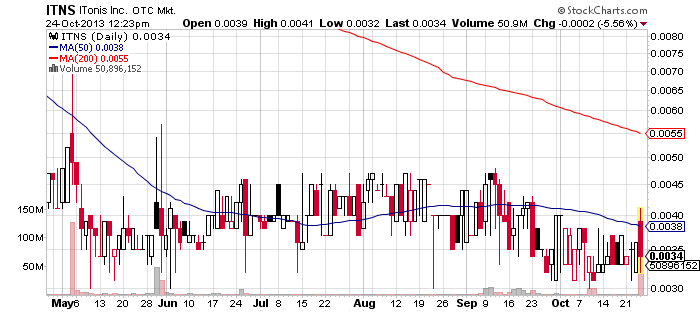 ITonis, Inc. (ITNS) – ITNS is one of the most intensively pumped penny stocks today as online databases have registered more than twenty different promoters touting the company.