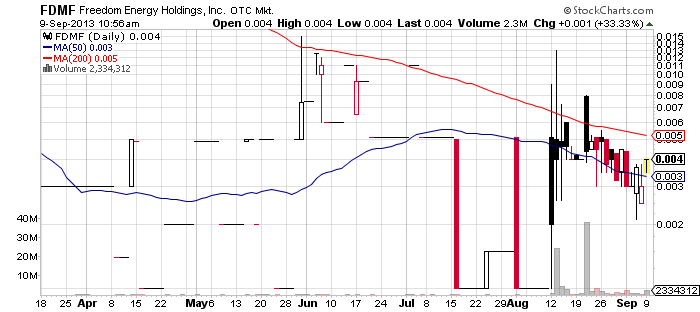 Freedom Energy Holdings, Inc. (FDMF) – Today, FDMF can boast with a market awareness campaign that has involved the highest number of stock promoters. So far online databases have registered more than 20 promoting websites touting the company.