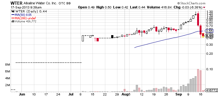 Alkaline Water Company Inc. (WTER) – WTER has shot another volley of promotional cartridges at penny stock traders today. Those who follow closely the promotional activities on the penny stock market may remember that WTER has been featured in various promotional campaigns since the start of August.