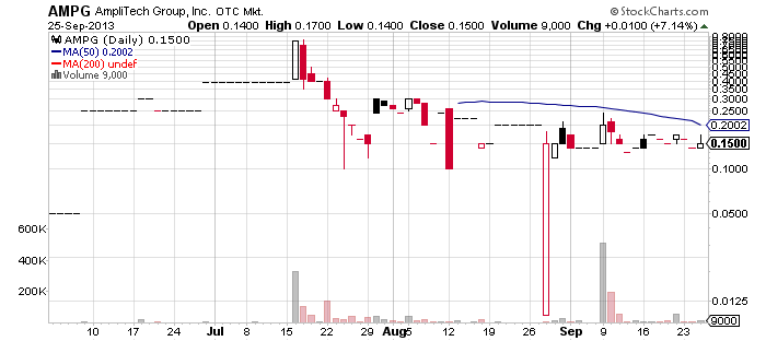 As a result AMPG registered one of its most intensive trading day for the last couple of months. On that day, which happens to be Sept 9th, AMPG generated a trading volume of 507 thousand, which was more than 15 times higher than the monthly average. At the same time the price of AMPG shares rose 43% to $0.18.