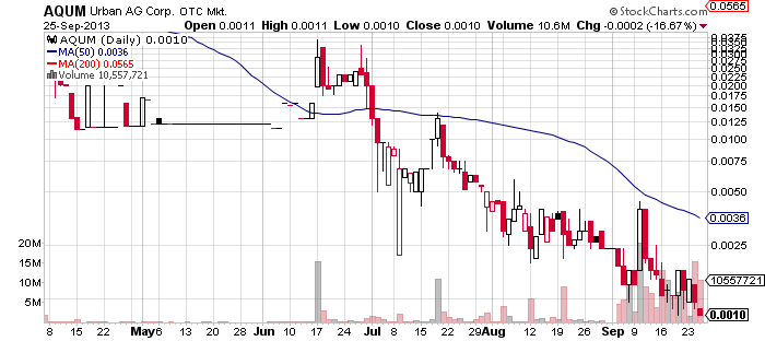 Urban Ag Corp. (AQUM) – AQUM is another company which is heavily promoted today. Online records show that AQUM has already been touted by eleven different newsletters since the last closing bell.
