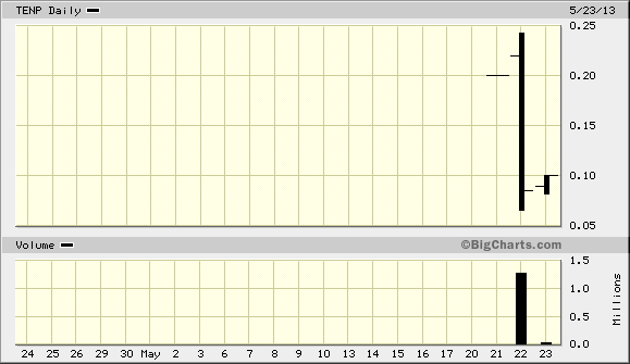 On that day TENP closed at $0.085 or 57% lower than the previous close on a volume of 1.2 million shares. After such a dramatic crash which had obviously burnt many unprepared investors, it is very unlikely that the new promotion will produce any significant effect on the market.