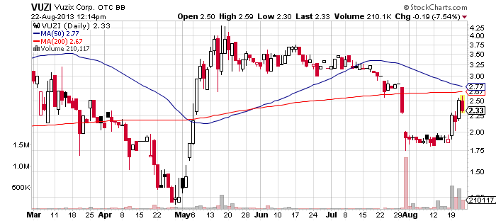 At the moment shares of VUZI stock are trading 5% lower at $2.39 per share on a four times higher than average volume of 200 thousand. So far, VUZI has generated 218 trades which are valued at $475 thousand making VZUI one of the most actively traded penny stocks on the OTCQB Markets today.