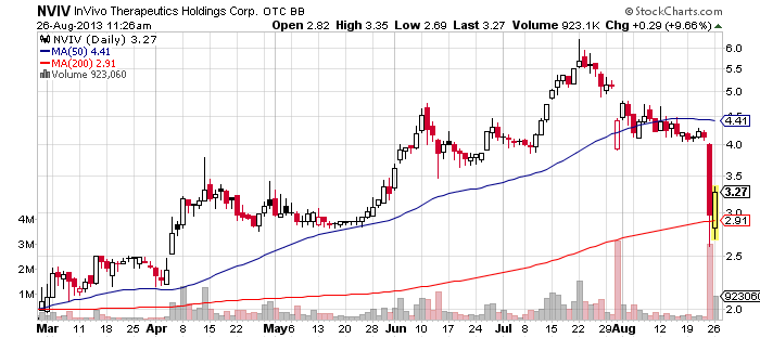 This announcement unlocked investors’ fears who rushed the stock downhill causing it to close at $3.00 per share after opening at $4.00 per share. In fact, NVIV has been facing troubles to contain its stock value ever since it hit a 52-week high at $6.20 per share on mid-July.