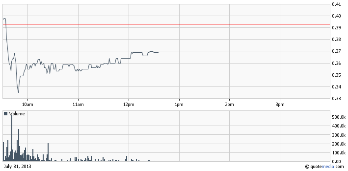 XUII opened the trading session above the previous close but shortly plunged down to an intraday low at $0.33 per share. In the last couple of hours the stock has regained some ground but is still trading below the previous close.