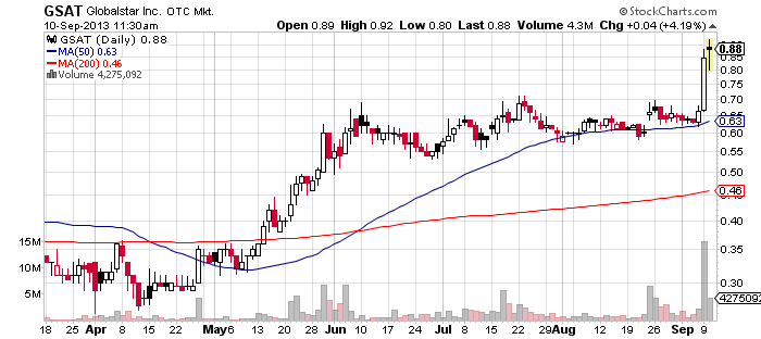 The announcement apparently excited penny stock traders as during the day GSAT share value shot up 28% to $0.84 per share. That happened on a much higher than average volume of 14 million.