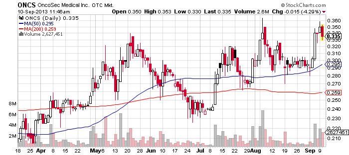 OncoSec Medical Incorporated (ONCS) – This week ONCS has been attracting more trading interest than usual towards its stock. The reason for this is the participation of the company in the Annual Rodman and Renshaw 2013 Global Investment Conference in New York City.