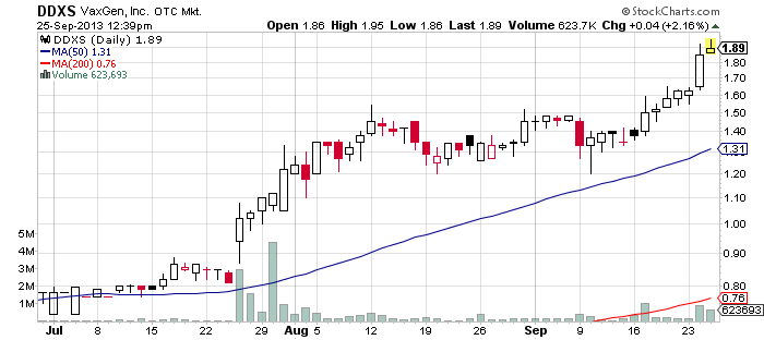 The reasons for the recent surge of DDXS seem unclear at the moment, as the stock has been soaring without any fundamental or promotional support. Yesterday, for example, the value of DDXS stock increased 14% to $1.85 per share on a higher than average volume of 900 thousand.